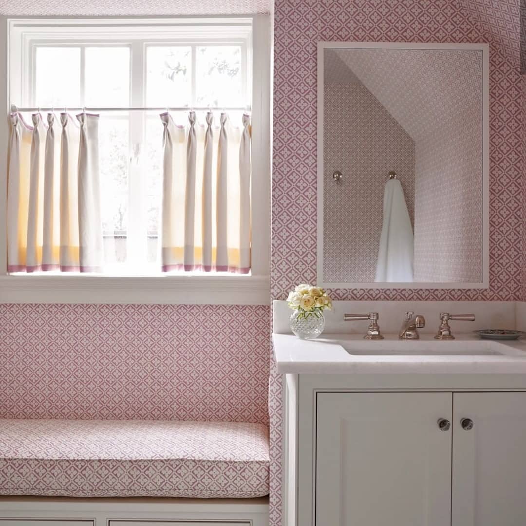 Quadrille Wallpaper: Melanie II - Custom Multi Pinks on White Paper (FIVE YARD MINIMUM)
