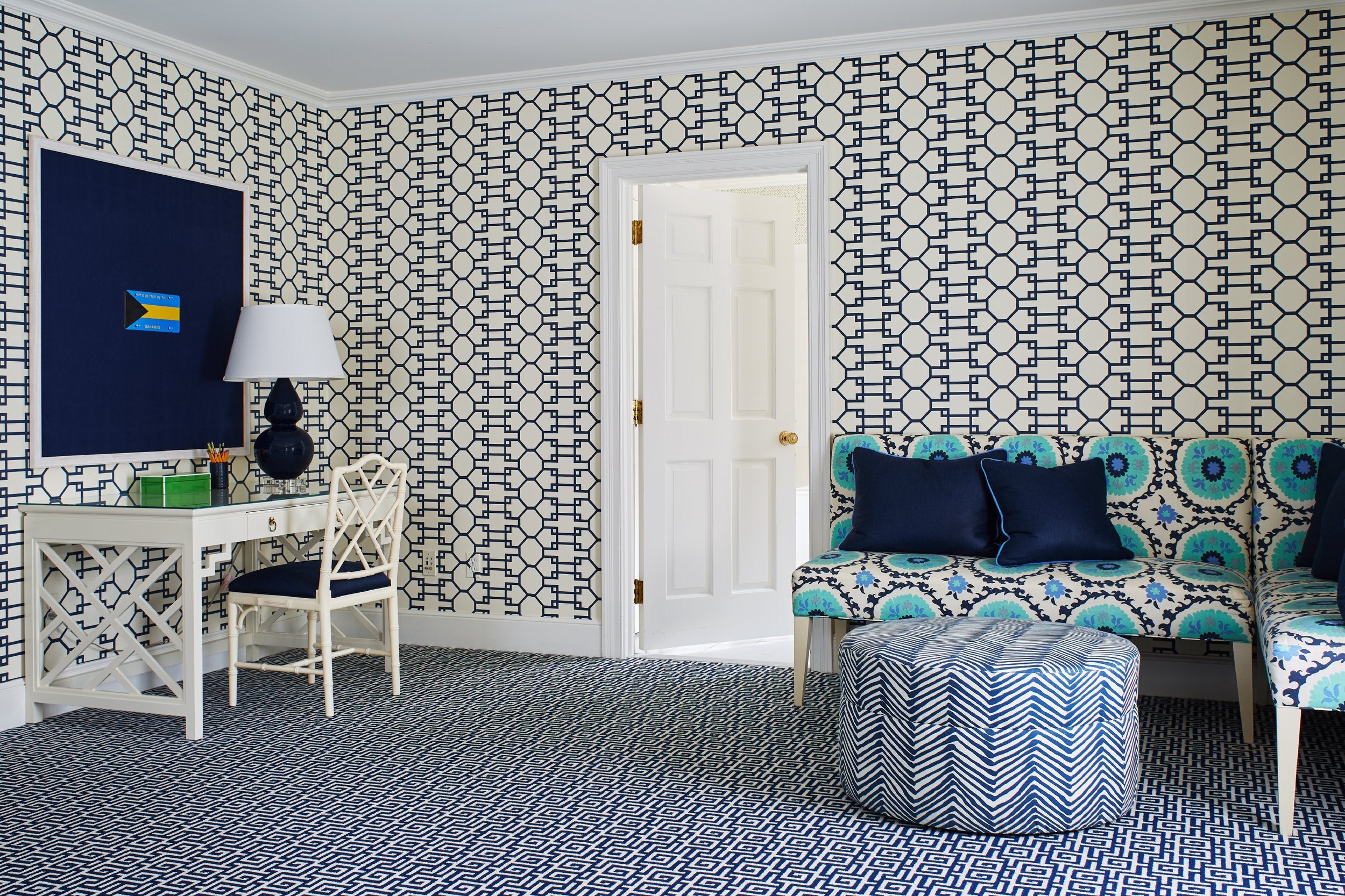 China Seas Wallpaper: San Marco - Custom Zibby Blue on White Paper (FIVE YARD MINIMUM)