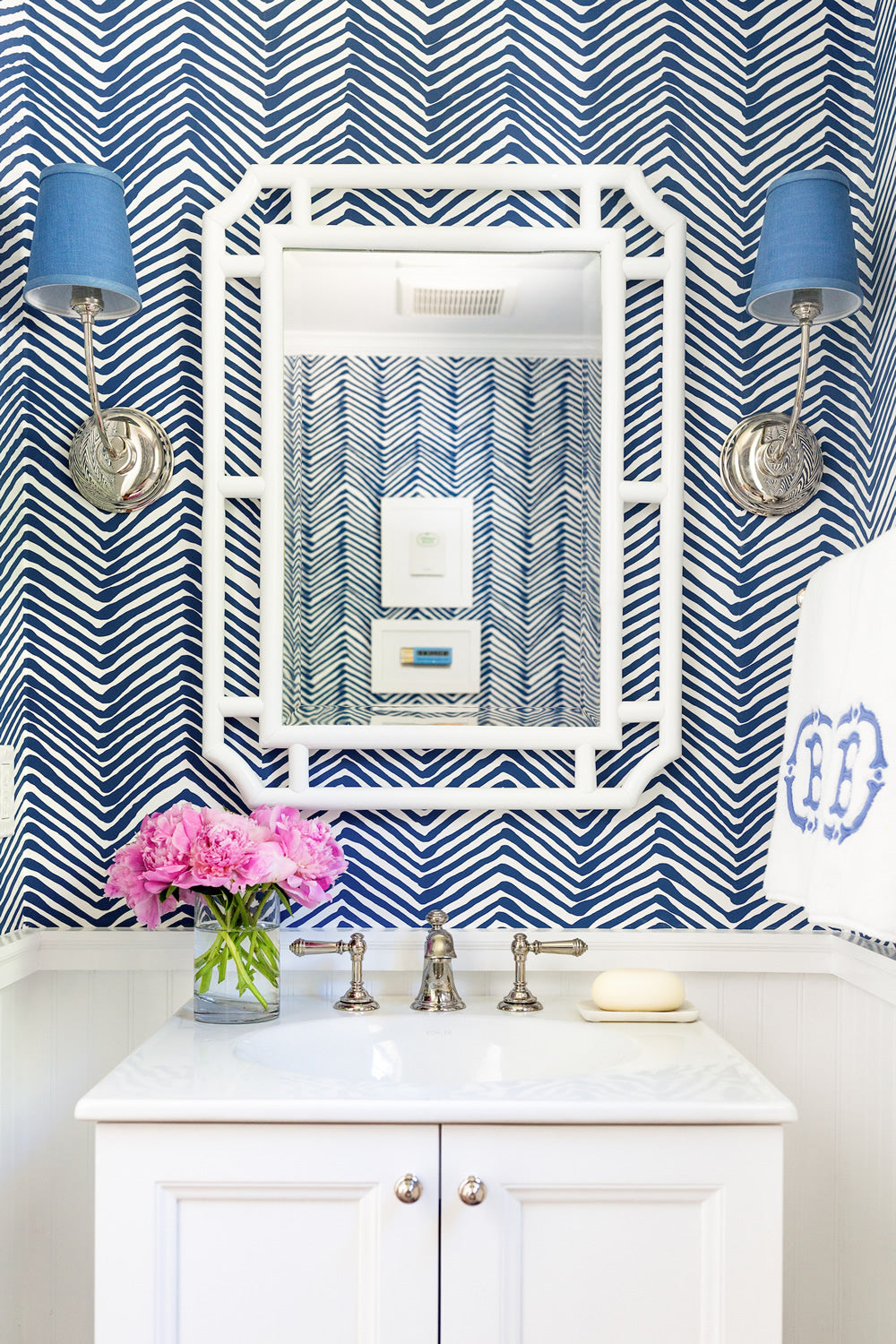 Alan Campbell Wallpaper: Petite Zig Zag - Custom Beige on Off-White Paper (FIVE YARD MINIMUM)