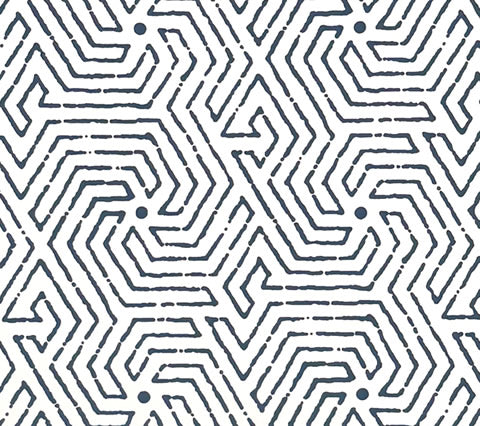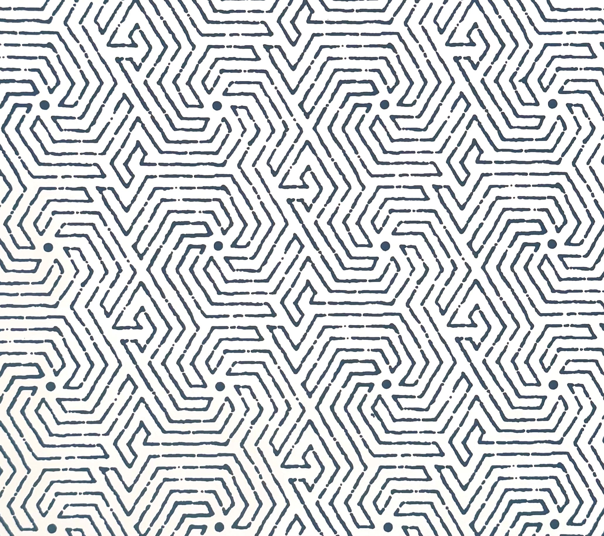 China Seas: Maze Wallpaper - Custom De Nimes on Almost White Paper (FIVE YARD MINIMUM)