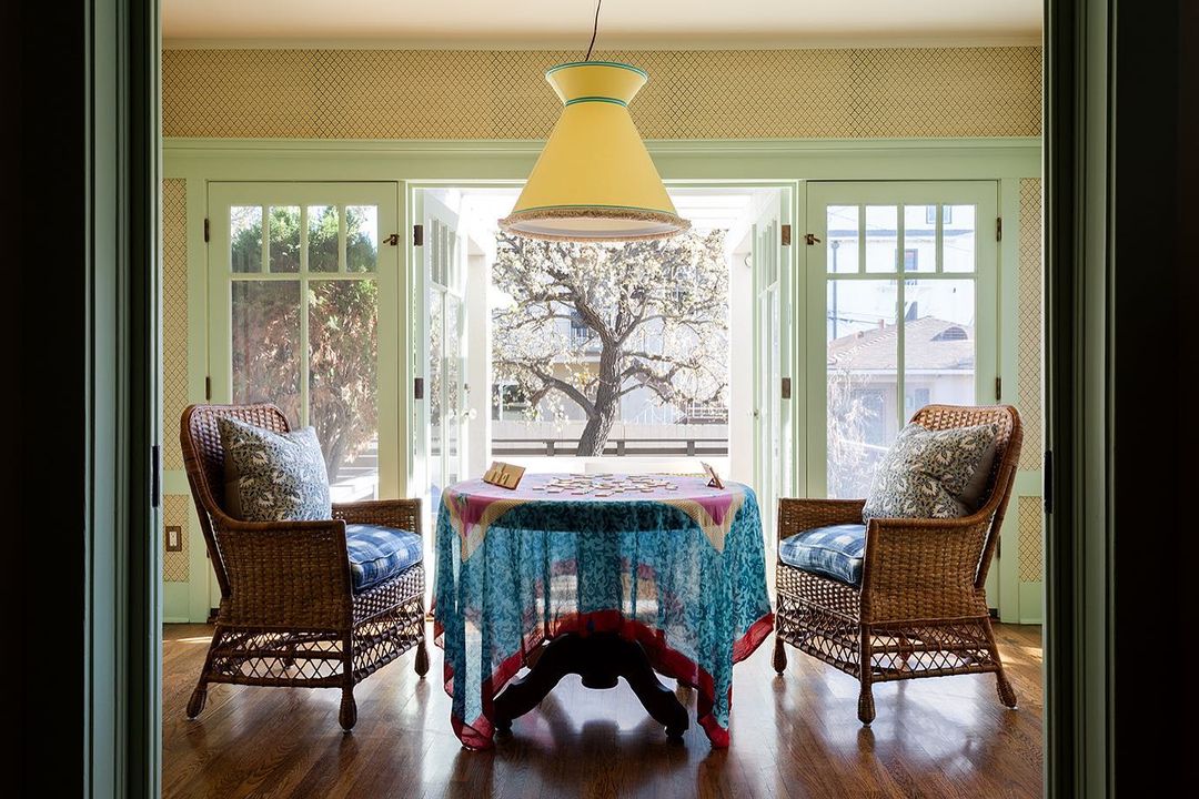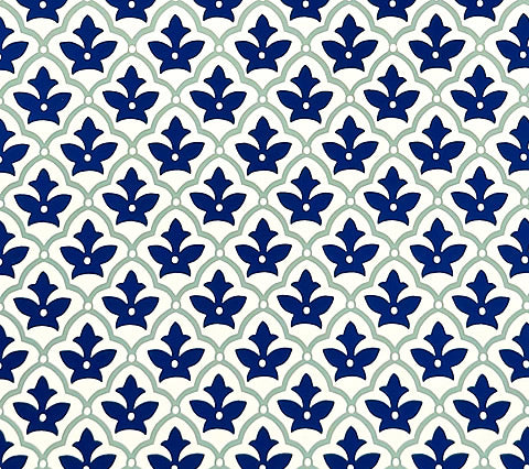 New from China Seas! A simple, allover, abstract floral print in a diamond grid.