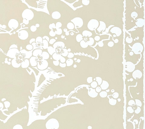 China Seas Wallpaper: Hawthorne - Custom Beige on White Paper (FIVE YARD MINIMUM)