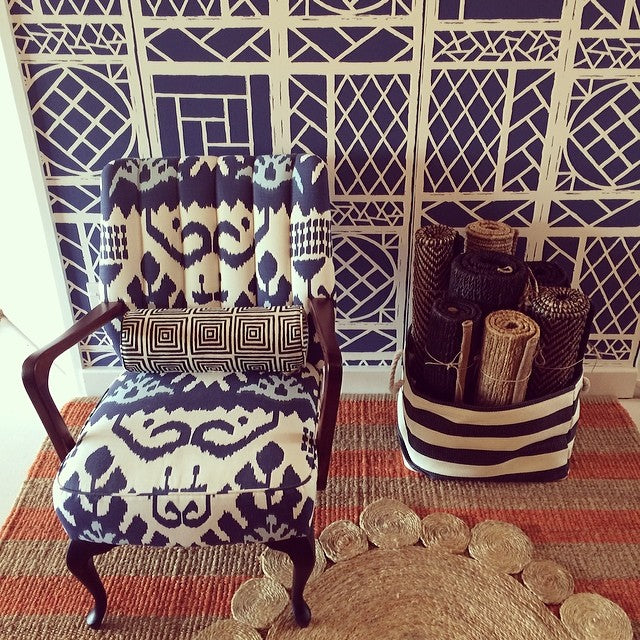 A more subtle, graphic version of China Seas' signature large-scale bamboo trellis print.