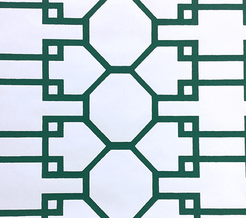 Quadrille Wallpaper: Brighton - Custom Rainforest Green on White Paper (5 yard minimum)