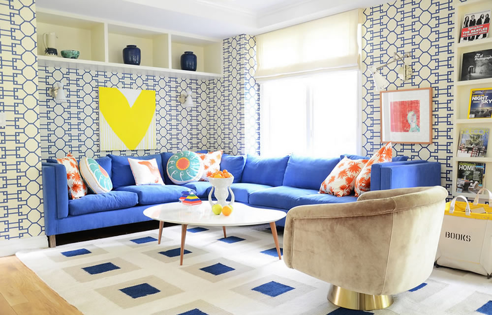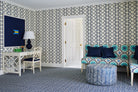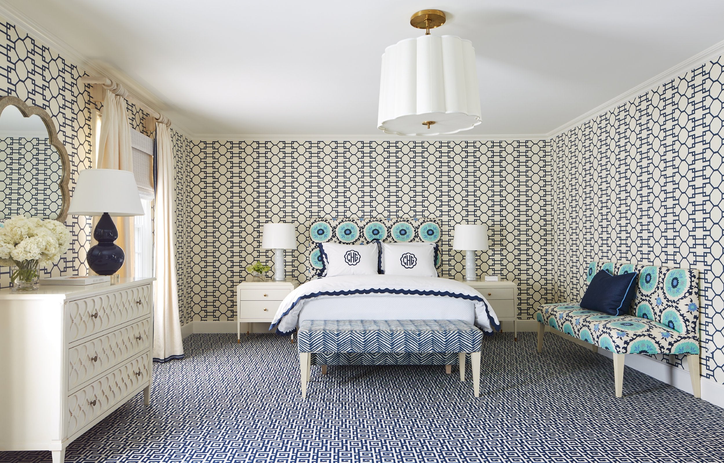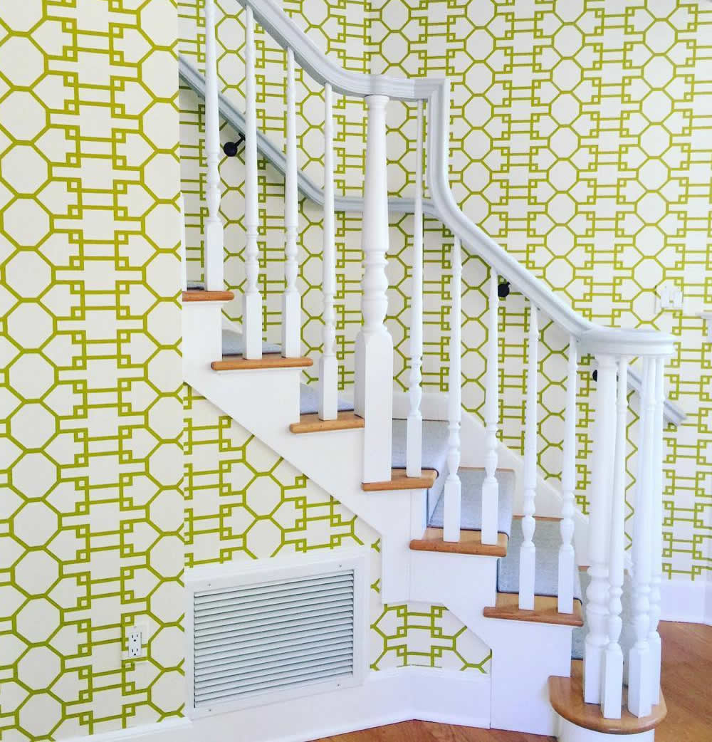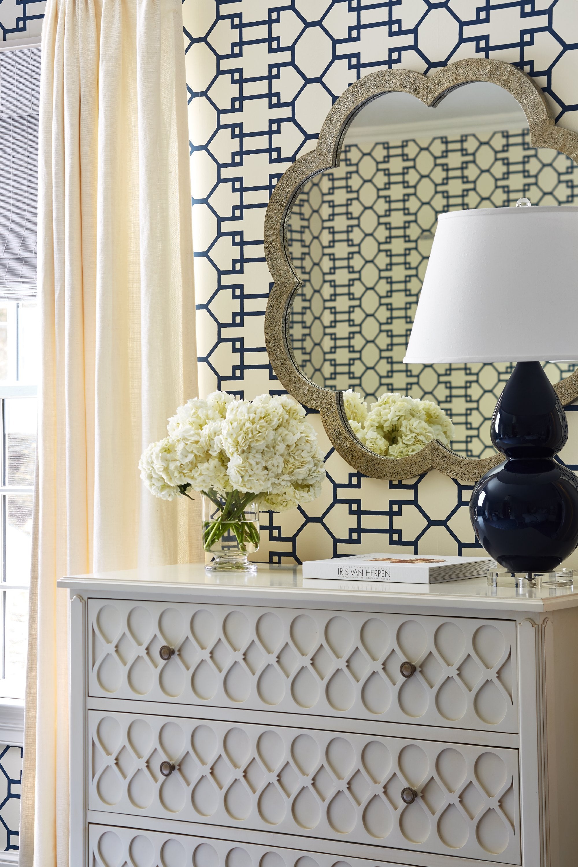 A classic, large-scale geometric trellis print, here in a custom Benjamin Moore color.