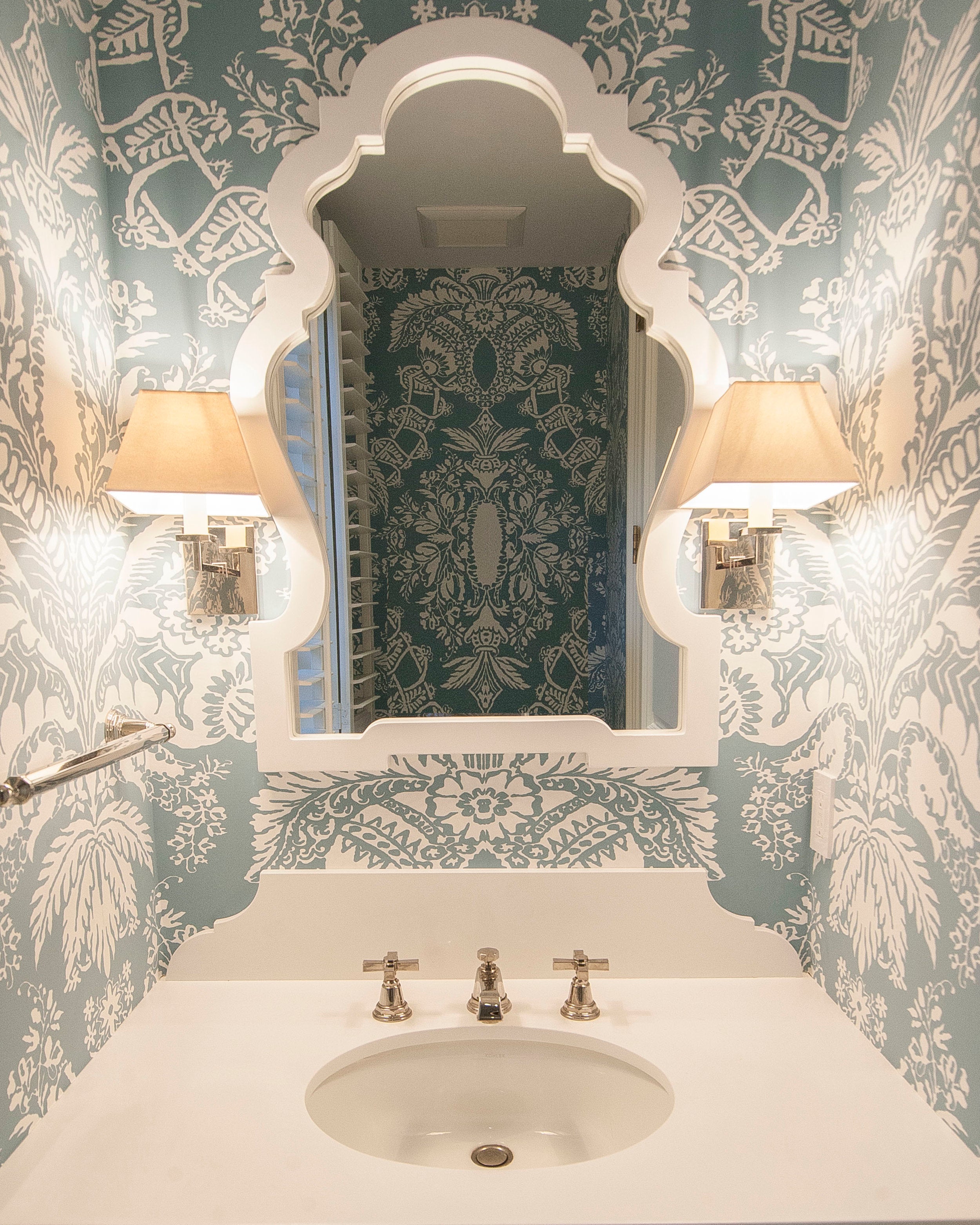 Alan Campbell Wallpaper: Potalla Outline - Custom French Blue on White Paper (5 YARD MINIMUM)