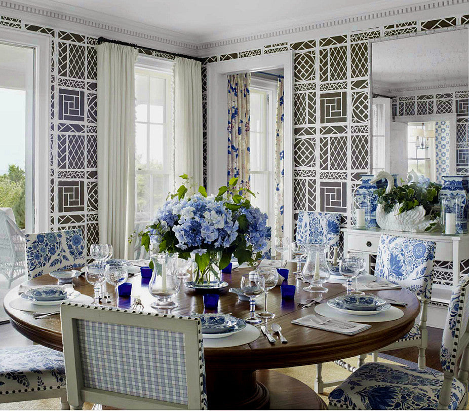 China Seas: Maze Wallpaper - Custom De Nimes on Almost White Paper (FIVE YARD MINIMUM)