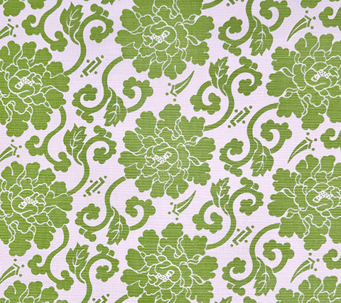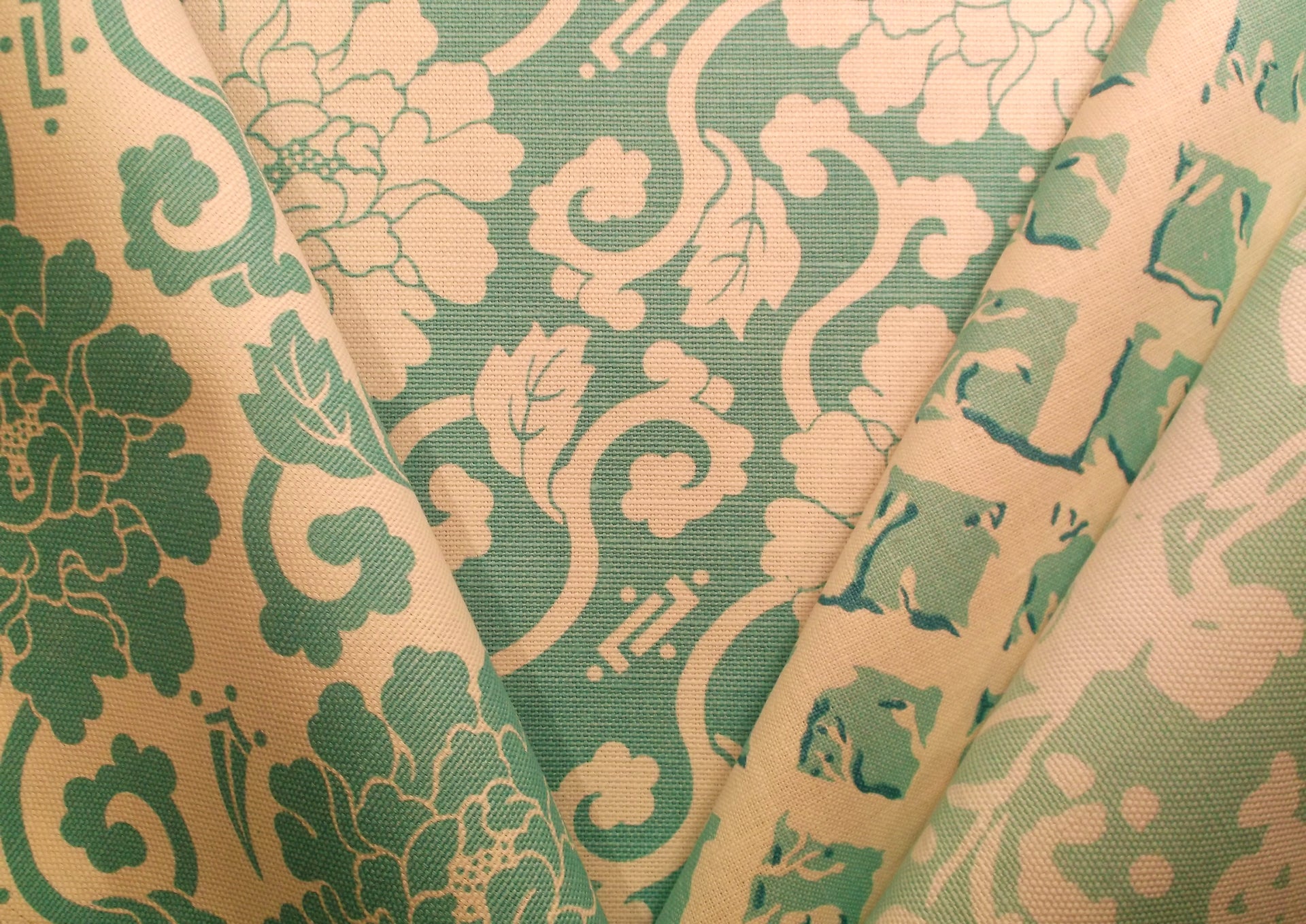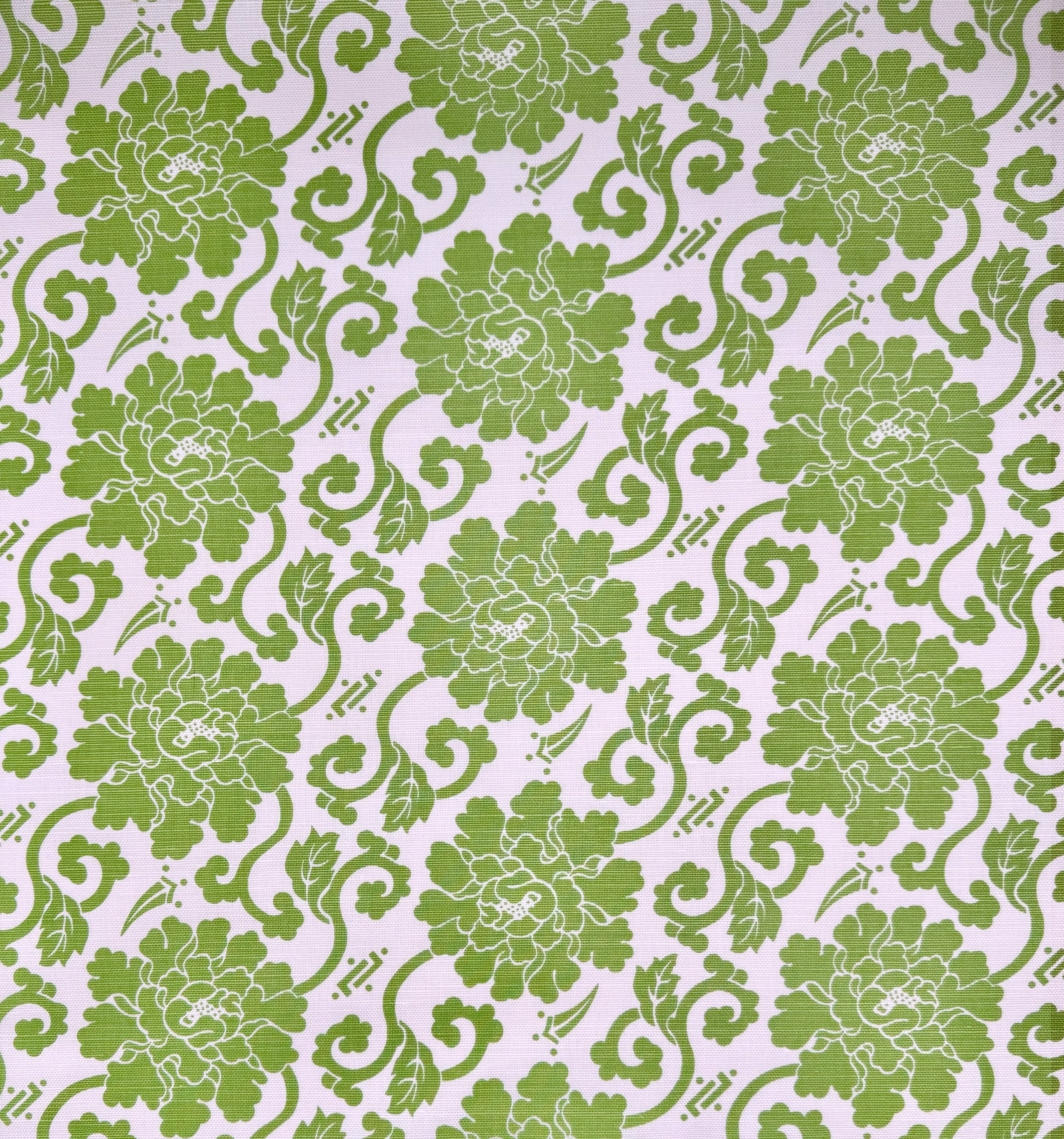 China Seas Fabric: Florals - Custom Jungle Green on Tinted Belgian Linen / Cotton