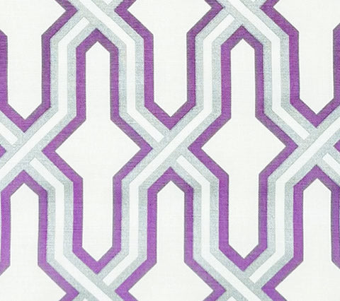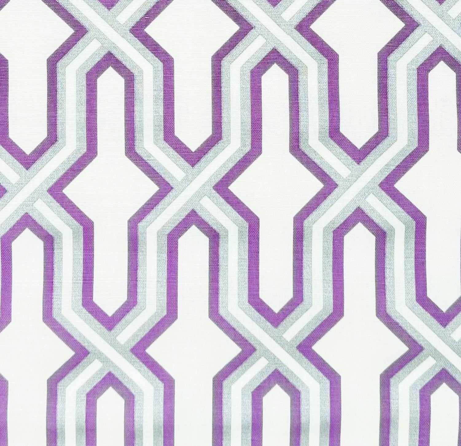China Seas Fabric: Large Gorrivan Fretwork - Custom Lilac / Silver on White Belgian Linen / Cotton