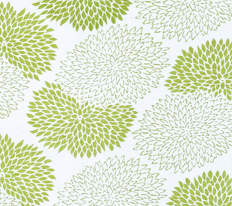 China Seas Fabric: New Chrysanthemum - Custom Green on White Belgian Linen / Cotton