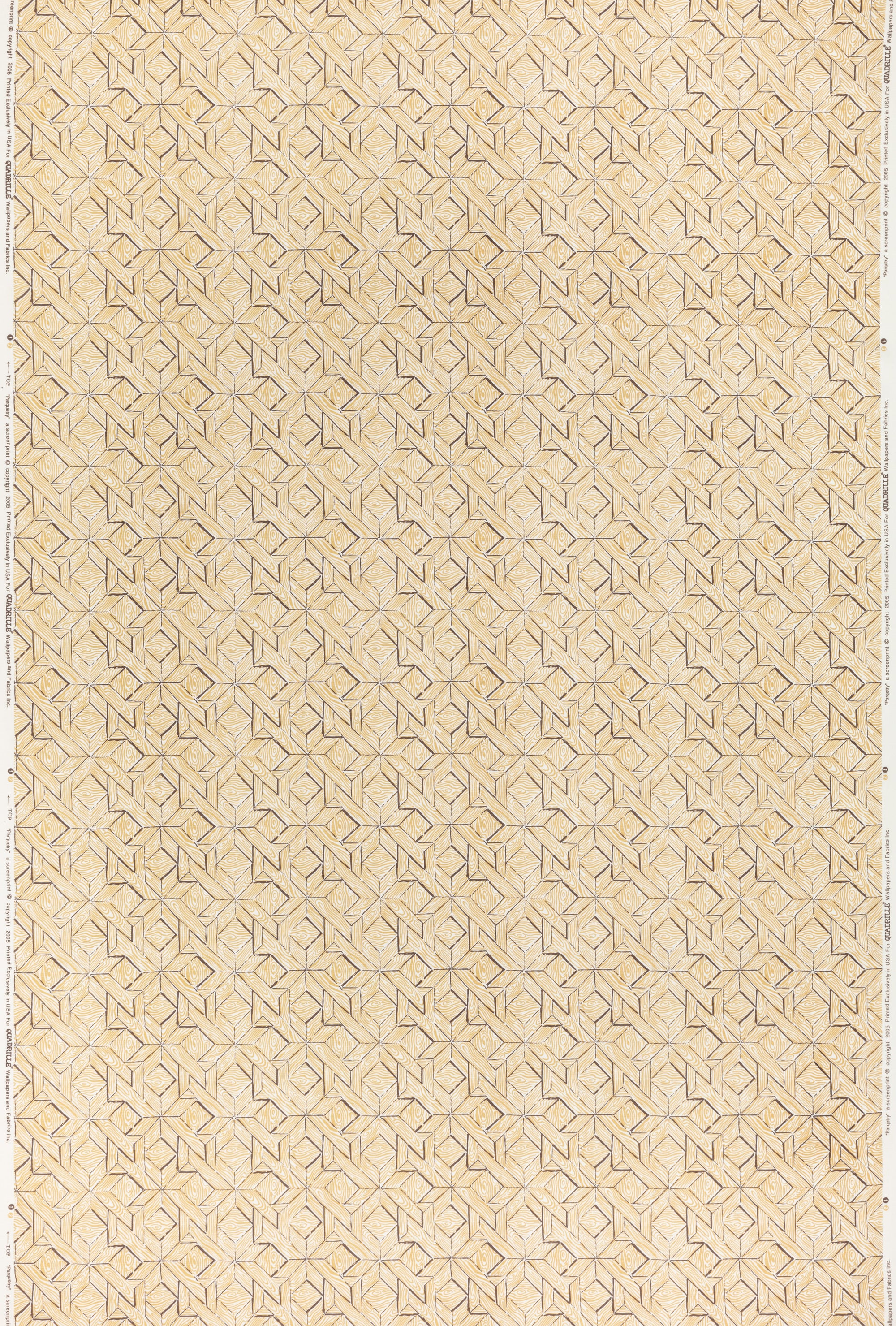 China Seas Fabric: Parquetry - Custom Brown / Camel on White Belgian Linen / Cotton