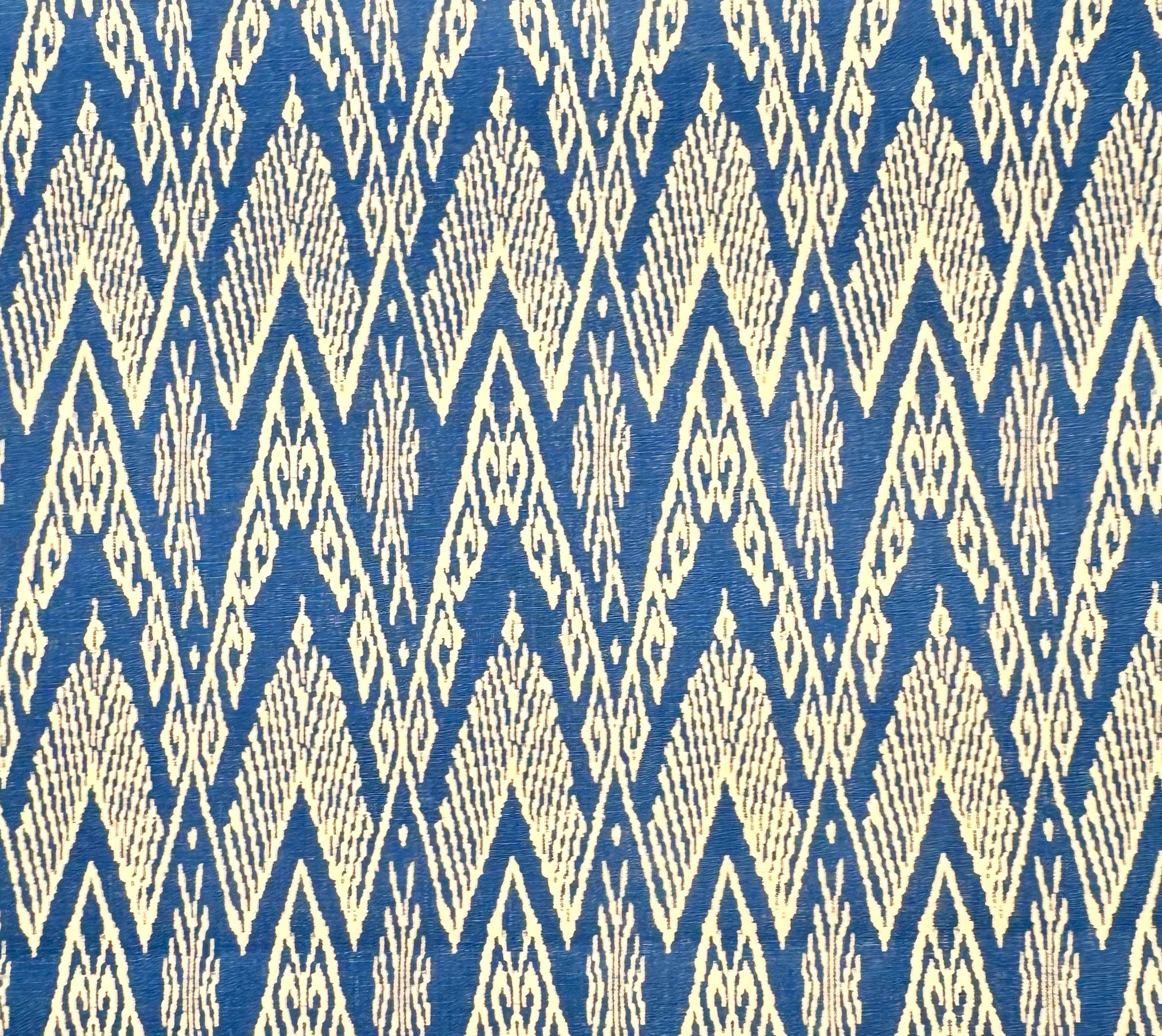 If Rudyard Kipling had stayed at the Raffles in 1950 instead of 1889, he wouldn't have complained about the food; he would have written an entire chapter about this ikat. It’s a 14-inch repeat of pure, disciplined elegance—the kind that Somerset Maugham would have leaned against while inventing his next plot.