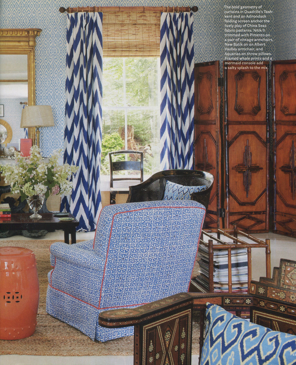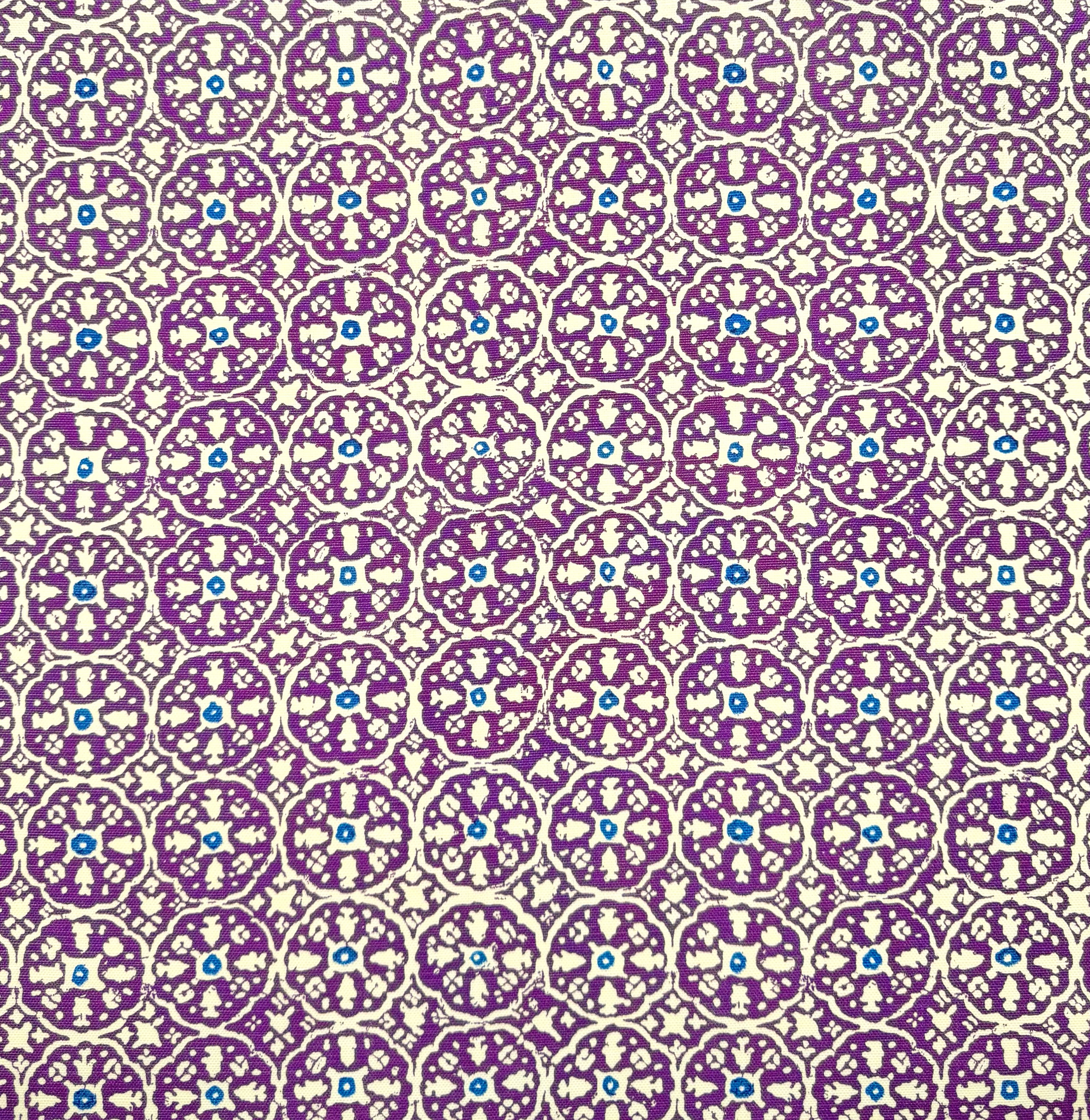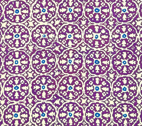 China Seas Fabric: Nitik II - Purple / Navy on Tinted Linen / Cotton