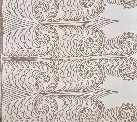 Home Couture Fabric: Gypsy Dance - Custom Tan on Oyster Silk Matka