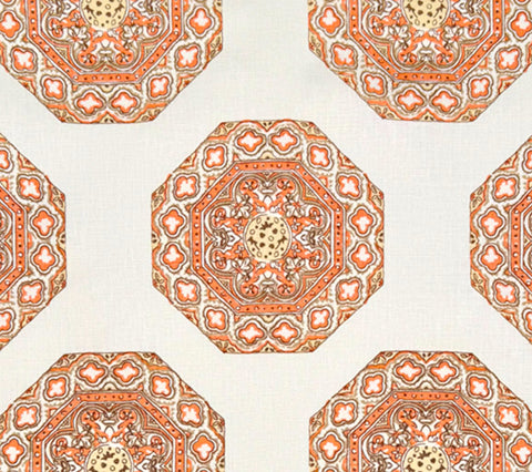 Home Couture Fabric: Medallion - Melon / Taupe / Camel on Cream 100% Linen