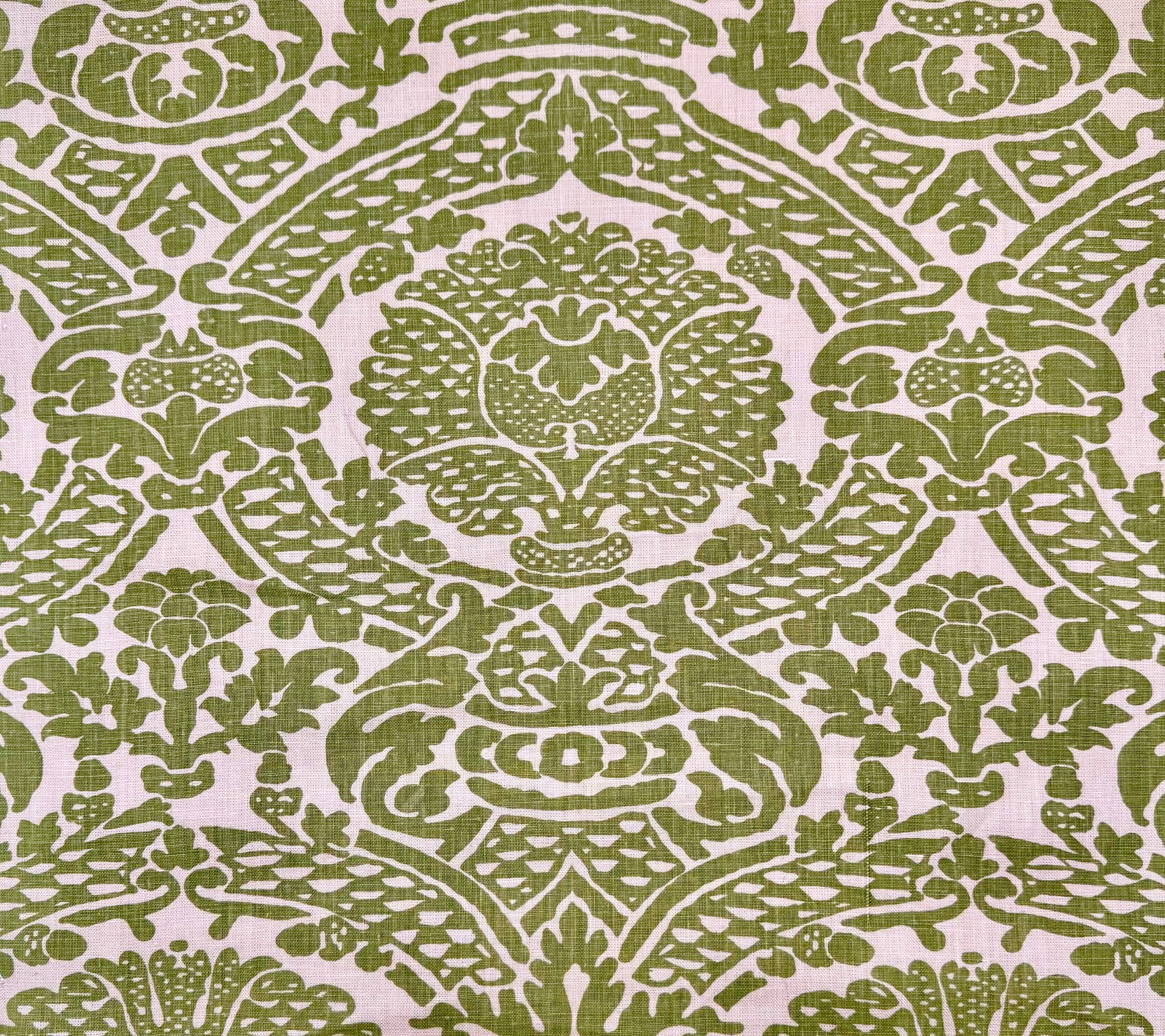 Home Couture Fabric: Principessa - Custom Apple Green on Tan 100% Linen
