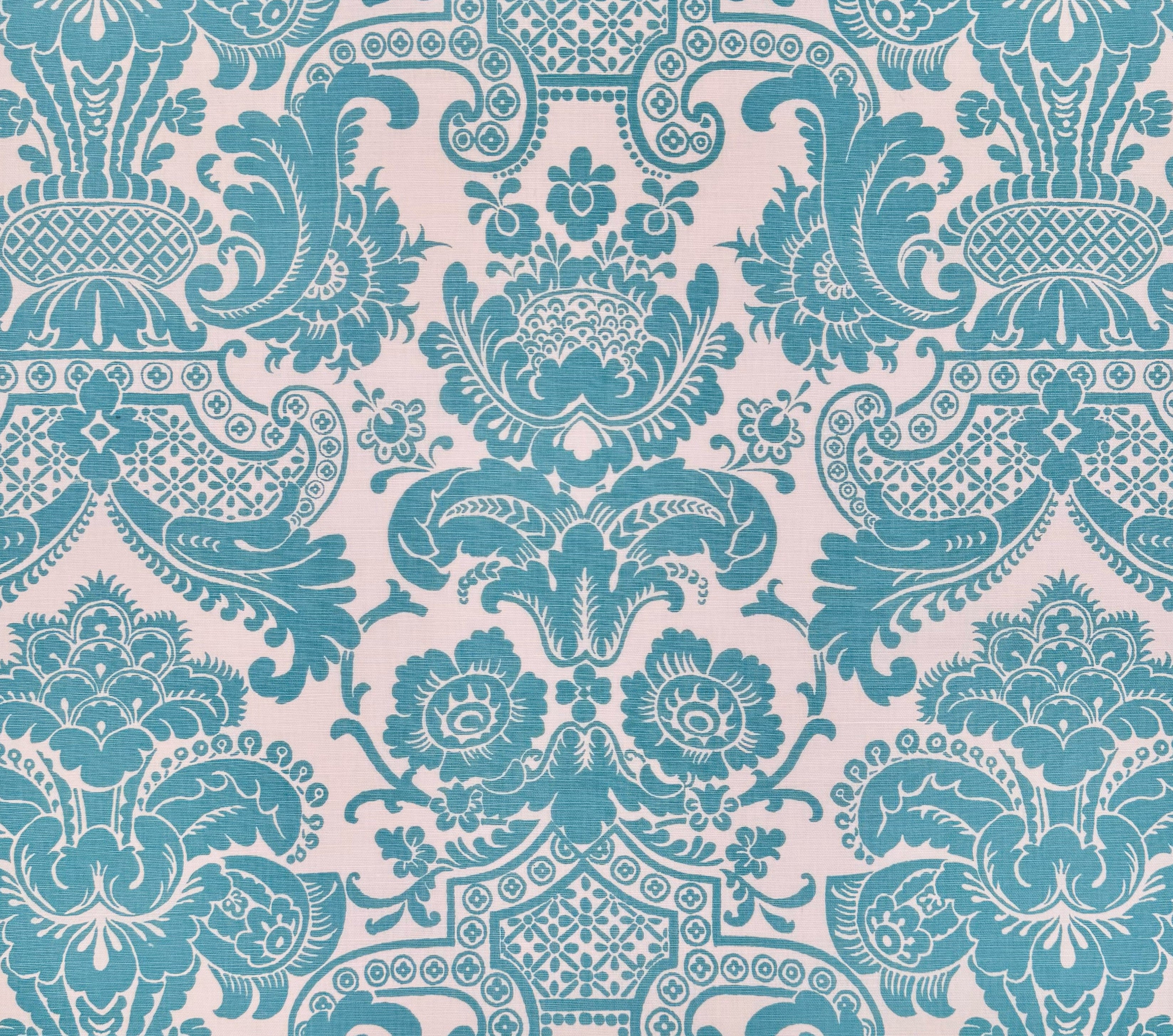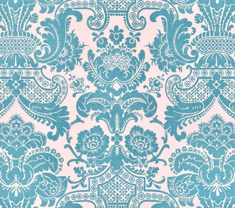 Quadrille Fabric: Este - Custom Turquoise on Tinted Belgian Linen / Cotton