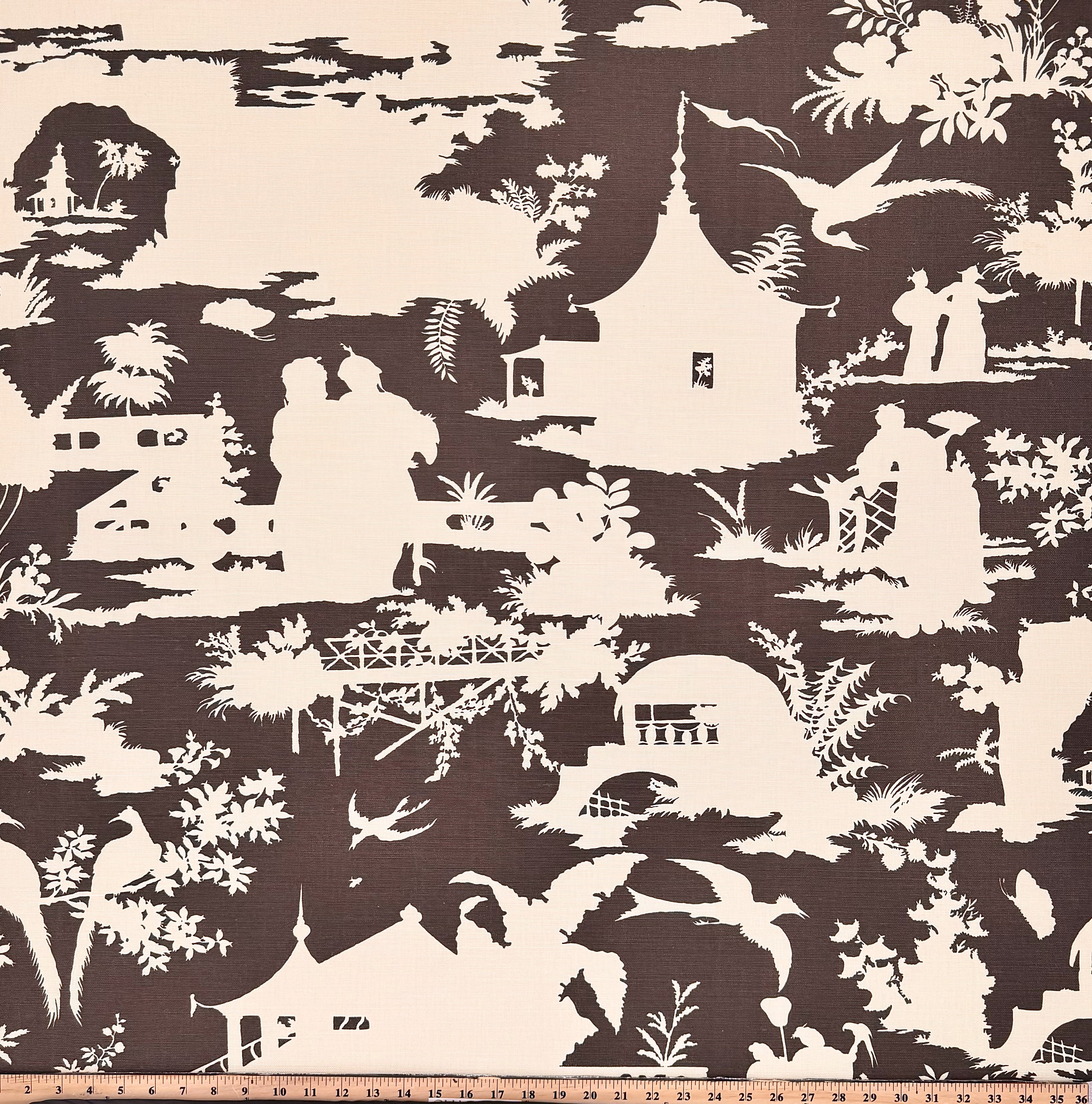 Quadrille Fabric: Paradise Background - Custom Brown on Tinted Belgian Linen / Cotton