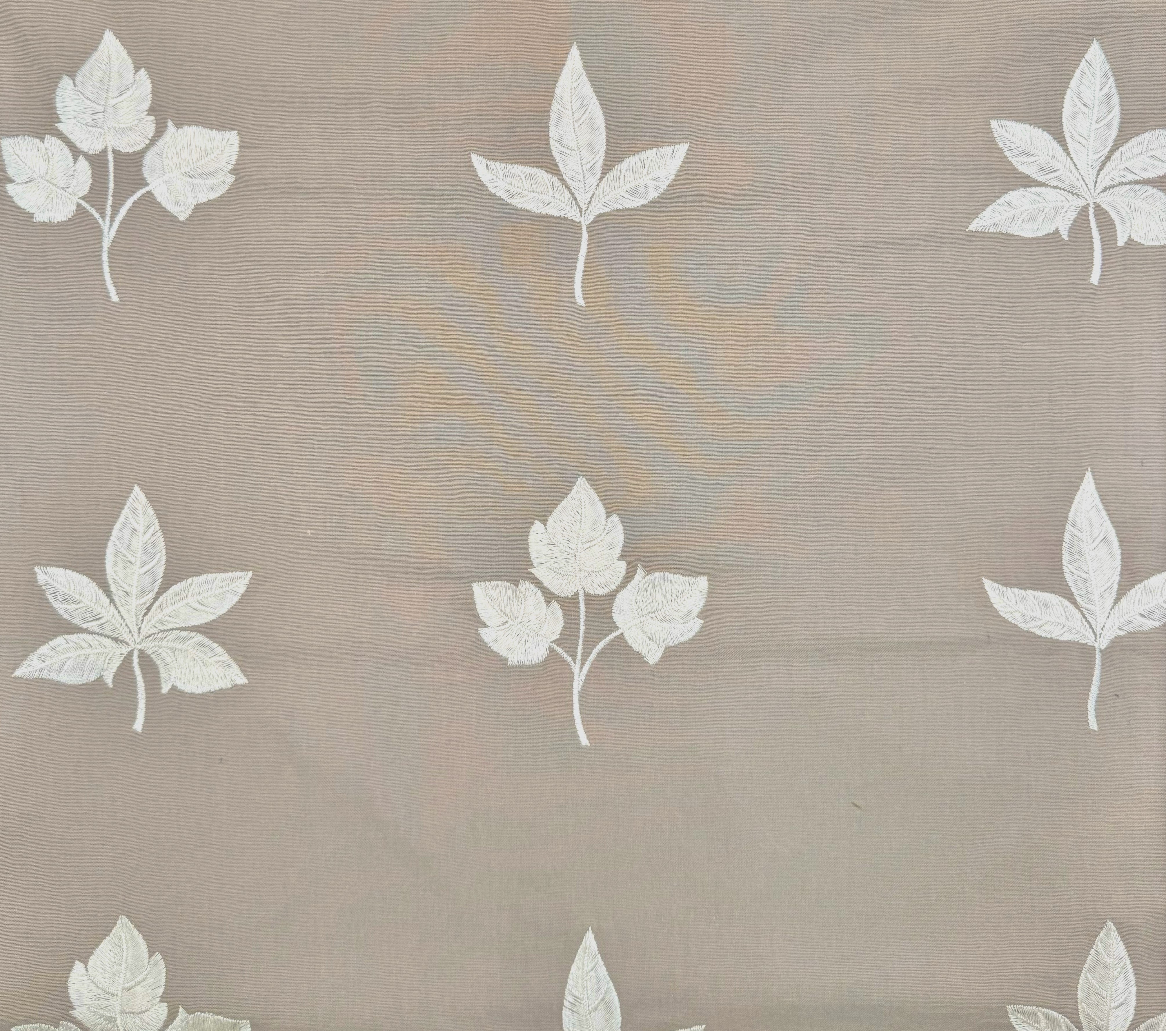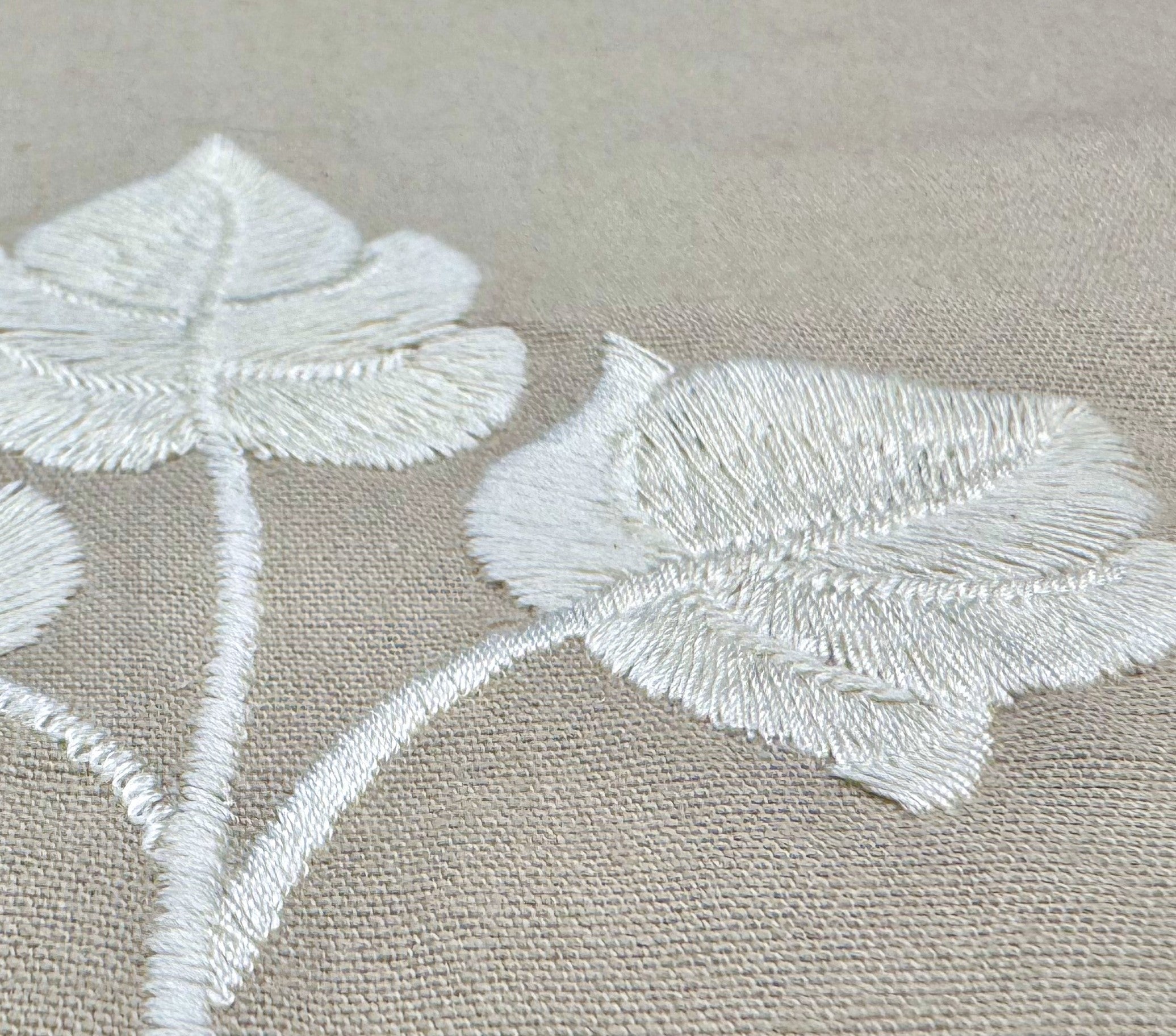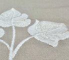 Quadrille Fabric: Botanica - White Embroidered on Gray Cotton