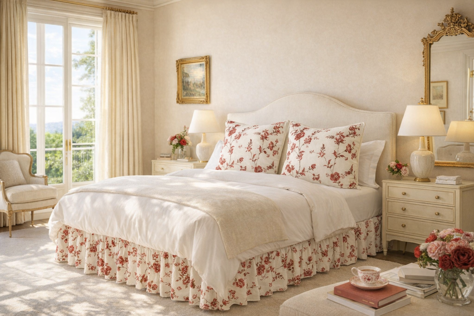 Quadrille Fabric: Sheridan Floral - Custom Multi Reds on Light Tinted Cotton